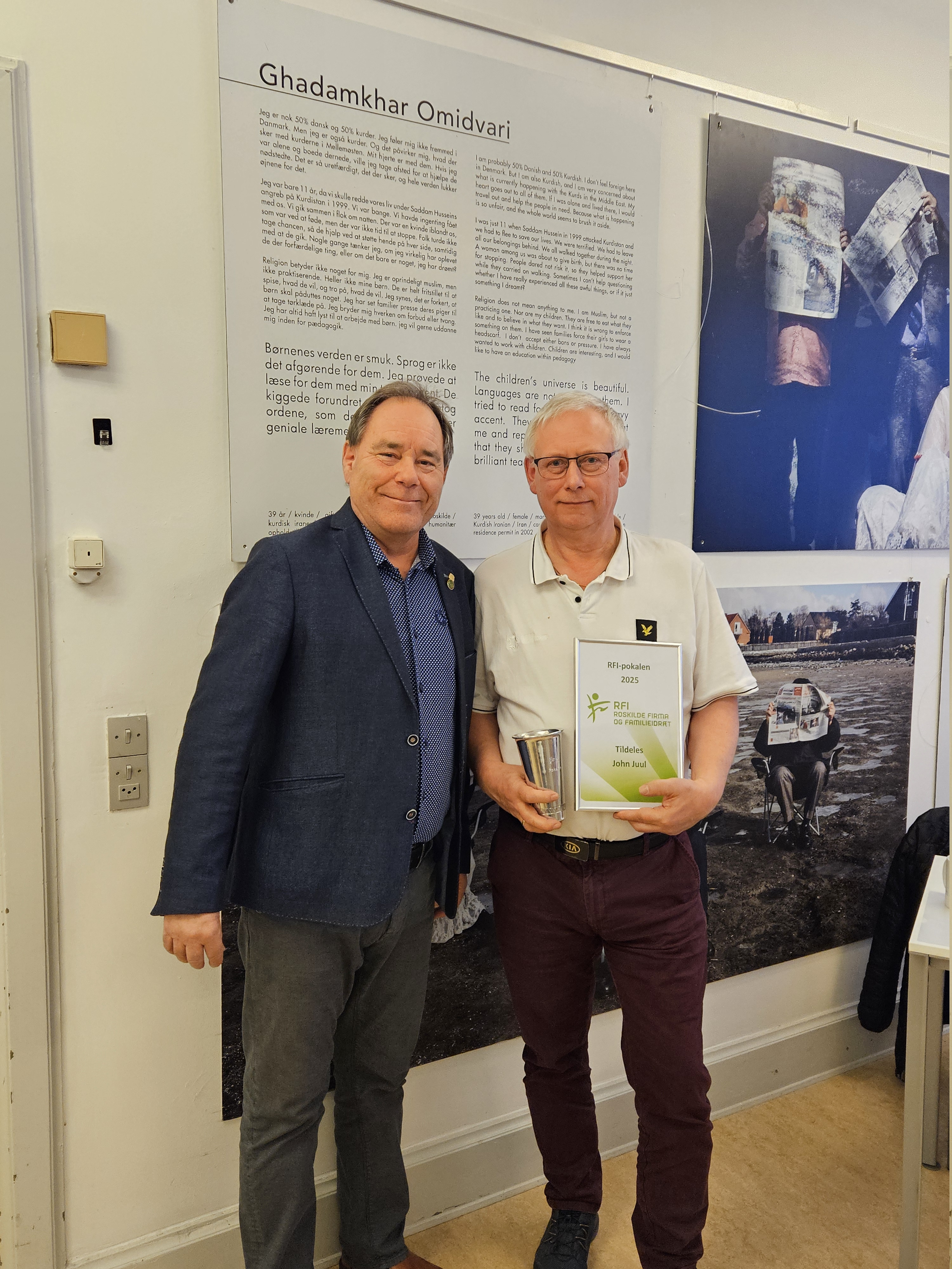 John Juul fik tildelt RFI-Pokalen af formand Claus. John er økonomiansvarlig og medlemsadministrator. Endvidere har John en stor aktie i Julemærkeløbet, og hjælper altid med når RFI afholder events